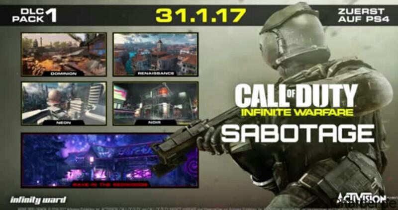 Sabotage beinhaltet vier Muliplayer-Maps – Noir, Renaissance, Neon und Dominion, Infinity Wards nachgebaute Version von dem Klassiker „Afghan“ aus Modern Warfare 2 – plus Rave in the Redwoods, das furchteinflößende neue Zombie Abendteuer im 90er Stil, entstanden aus der verrückten Vorstellungskraft unseres Direktors Willard Wyler.
