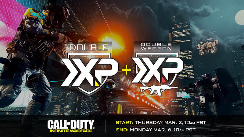Das Call of Duty Infinite Warfare Double-XP und Double-Weapon-XP Woche Startet Donnerstag den 02. März und endet am Montag 06. März um 19:00 Uhr.