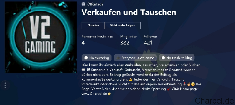 Gleichzeitig möchten wir euch unser Xbox Club „Verkaufen und Tauschen“ zu Herzen legen. Hier könnt ihr eure zeug egal ob für Xbox oder andere Konsolen zum verkauf oder Tauchen anbieten natürlich könnt ihr auch alles andere zum thema Electronic anbieten egal ob software oder Hardware. So könnt ihr eure allen zeug an gleichgesinnte loswerden. Natürlich könnt ihr euch nach Zeug Suchen oder alte z.b Codes und soweiter verschenken. Also worauf wartet ihr? Ihr seit alle herzlich willkommen.