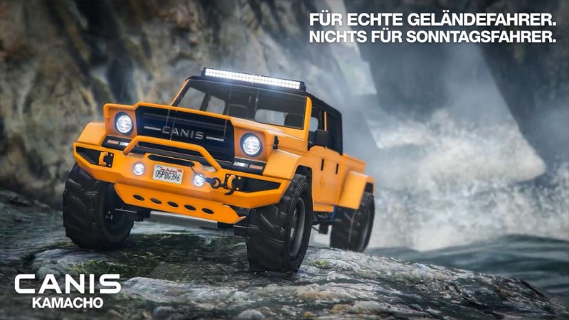 Der Canis Kamacho ist eine Erinnerung an die glorreichen Tage amerikanischer Allrad-Fahrzeuge – er bietet die Zuverlässigkeit eines Pick-ups und die Widerstandsfähigkeit eines kleinen Schlachtschiffs, ohne aerodynamische Kompromisse einzugehen. Mit steinhart gefedertem Chassis und der entsprechend spartanischen Innenausstattung eines echten Geländefahrzeugs könnt ihr im Canis Kamacho von oben auf eure Freunde herabblicken. Jetzt erhältlich bei Southern San Andreas Super Autos.