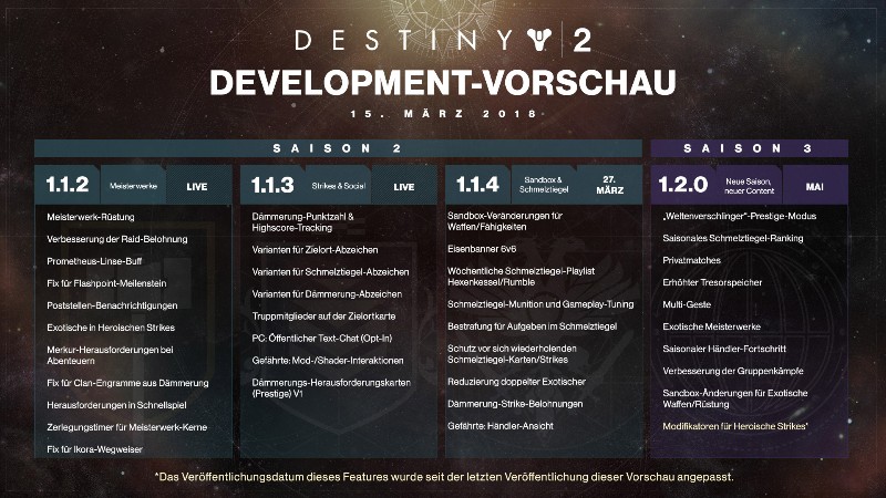 Es wird Details zu den Exotischen Meisterwerken, dem saisonalen Schmelztiegel-Ranking, Modifikatoren für Heroische Strikes und vielem mehr geben.