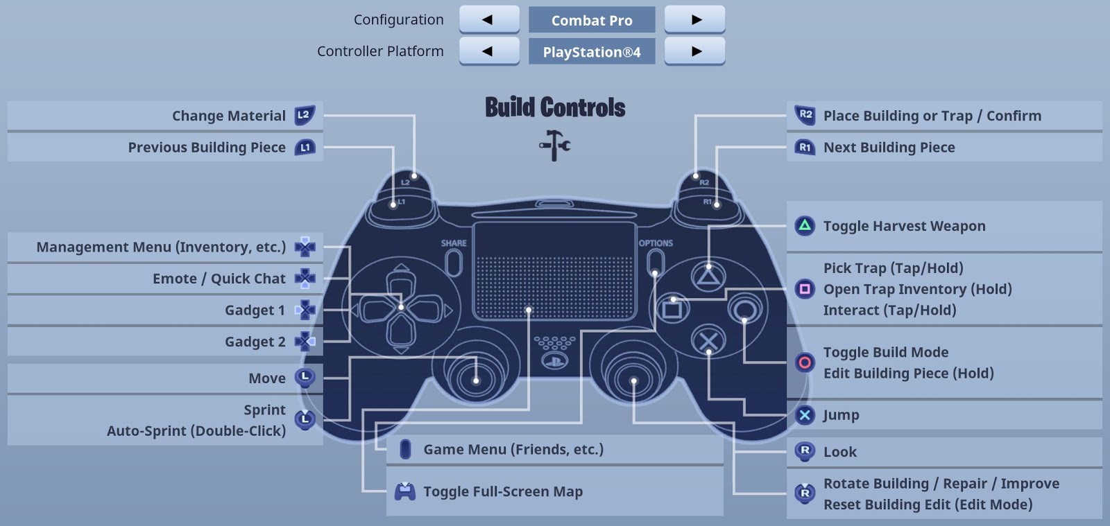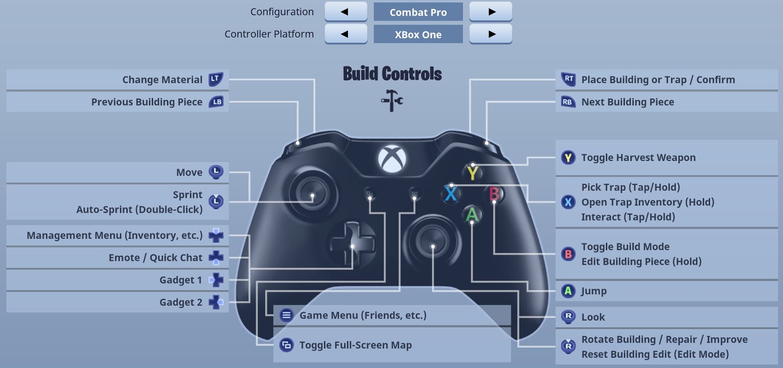 Allen von euch, die bereits Battle Royale oder Rette die Welt gespielt haben, ist bestimmt der große Unterschied zu den standardmäßigen Tastenbelegungen aufgefallen. Ein wichtiger Vorteil von Kampf Pro ist das Wechseln von Waffen und Gebäudeteilen über die Bumper (Schultertasten) des Controllers.