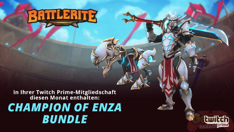 Vom 17. April bis zum 11. Juni bringt euch Stunlock Studios zusammen mit Twitch Prime dieses Bundle zu Battlerite: Champion of Enza, um euch in der Arena zu unterstützen! Das Bundle enthält den kostenlosen Champion Raigon sowie ein besonderes Outfit, eine eigene Siegespose, ein Reittier und noch vieles mehr!