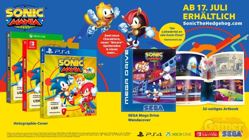 Sonic Mania™ Plus, die ultimative Version des von Kritikern gefeierten Plattormers Sonic Mania, ist ab 17. Juli 2018 in Nord-Amerika und Europa für PlayStation 4, Xbox One und Switch im Handel erhältlich.