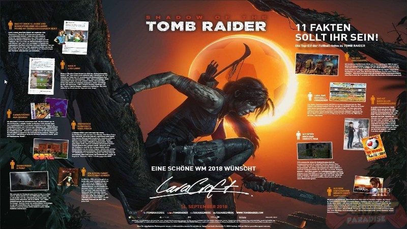 Alle Teams, Gruppen und Termine der Fußball-Weltmeisterschaft (und natürlich auch Lara Crofts Ergebnistipps) finden Sie in unserem ganz speziellen deutschen WM-Planer. Das Poster im Design von SHADOW OF THE TOMB RAIDER ist der ultimative Begleiter für das Sportereignis des Jahres und enthält zudem 11 erstaunliche Fakten, die beweisen, dass Lara Croft und Fußball einfach zusammengehören.