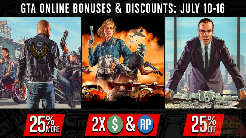 Plündert euch bis zum 16. Juli durch die Lüfte mit doppelten GTA$ & RP auf alle Verkaufsmissionen aus Smuggler’s Run. Motorradclub-Präsidenten können ihr Geschäft mit 25 % Rabatt auf alle Vorräte für Biker-Unternehmen ankurbeln und mit 25 % Bonus auf alle Verkäufe kräftig abkassieren, während CEOs ihre Gewinne die ganze Woche lang mit 25 % Rabatt auf Spezialfracht-Kisten maximieren können.