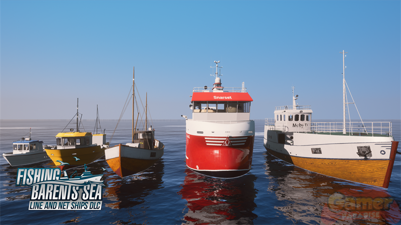 So ist das kleinste Schiff im Bunde, die Tobie, mit 7 Metern Länge ein sehr kompaktes Wasserfahrzeug, das schnell und doch stabil die Wellen der Barentssee durchpflügen kann. Mit der etwas über 10 Meter langen Sharky wird ab sofort ein weiteres kleines, dabei jedoch topmodernes Fischerboot aus dem Hafen von Hammerfest auslaufen. Bei der Snarset handelt es sich um ein ebenfalls hochmodernes Schiff mit leichtem Aluminium-Rumpf von 14 Metern Länge, das gemeinsam mit der zwanzig Meter langen Moby D. zu den beiden größten Booten des DLCs gehört. Moby D. basiert dabei auf einem populären norwegischen Boots-Design der 1970er Jahre, dessen Rumpf aus Stahl und Holz ihm besondere Stabilität und Widerstandsfähigkeit gegen die unbarmherzigen Elemente auf hoher See verleiht.