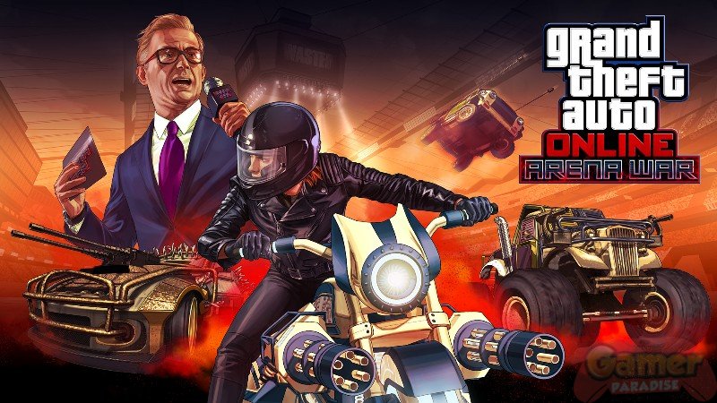 Rockstar Games präsentiert Arena War, wo gnadenlose Gladiatorenkämpfe auf die technologische Spitze der Fahrzeugmodifikation in einem spektakulären – und leicht entflammbaren – Wettbewerb treffen. Meldet euch an und startet eine komplett neue Karriere unter der stratosphärischen Kuppel der Maze Bank Arena, in der es darum geht, am Steuer das Gehirn eurer Gegner im Namen der Unterhaltung zu Brei zu verarbeiten, präsentiert von Alan Jerome Productions.