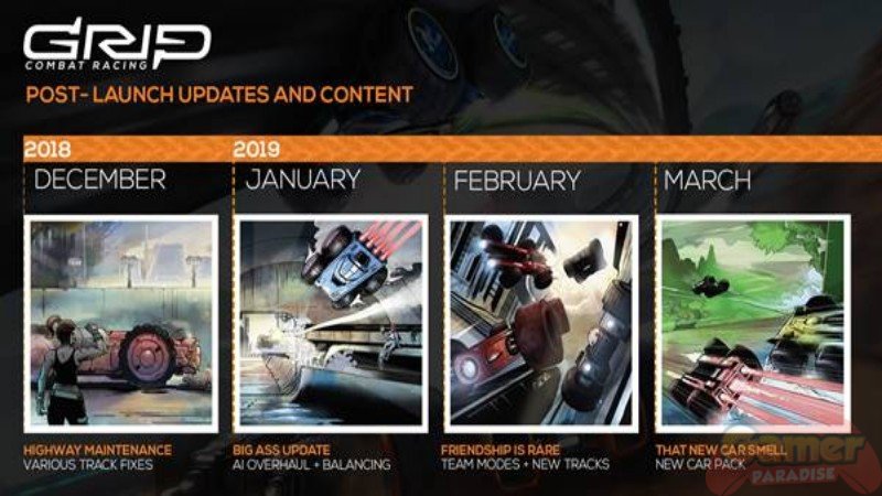 Nach einem erfolgreichen Launch auf Steam, PlayStation 4, Nintendo Switch und Xbox One (inklusive des Microsoft Game Pass-Service) schildert die Timeline einige kommende Balancing-Verbesserungen, neue Strecken und Modi. Diese sollen dazu beitragen, GRIP: Combat Racing weiterhin aufregend und den kompetitiven Charakter aufrecht zu erhalten.