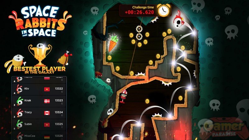 Darüber hinaus rasen Spieler so schnell wie möglich durch die Level, bei dem Timing und Können entscheidend sind, um die höchsten Ränge zu erreichen. Dank des implementierten Wiedergabesystems können zudem die zehn besten Spieler der einzelnen Level sowie der eigene Lauf überprüft werden. Space Rabbits in Space bietet ein dynamisches Spielerlebnis, verpackt in einer äußerst amüsanten Präsentation, in der die Kaninchen von Geschwindigkeit und Süßigkeiten besessen sind und mit ausgefallenen Outfits gegen Ingame-Gold im Spiel eingekleidet werden können.