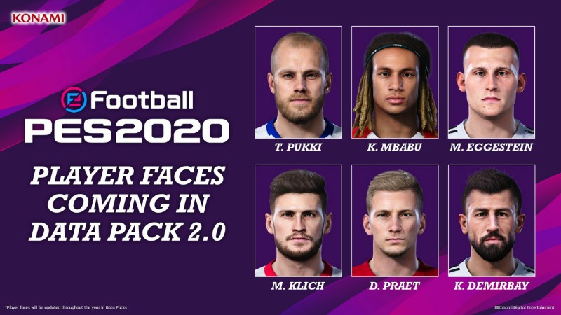 Um auch weiterhin dem eigenen höchsten, grafischen Anspruch zu genügen, werden eFootball PES 2020 mit Data Pack 2.0 außerdem detaillierte Spielergesichter von weiteren Spielern wie beispielsweise dem finnischen Stürmer Teemu Pukki, dem schweizer Verteidiger Kevin Mbabu, dem deutschen Mittelfeldspieler Kerem Demirbay, dem deutschen Mittelfeldspieler Maximilian Eggestein sowie dem französischen Verteidiger Abdou Diallo integriert.
