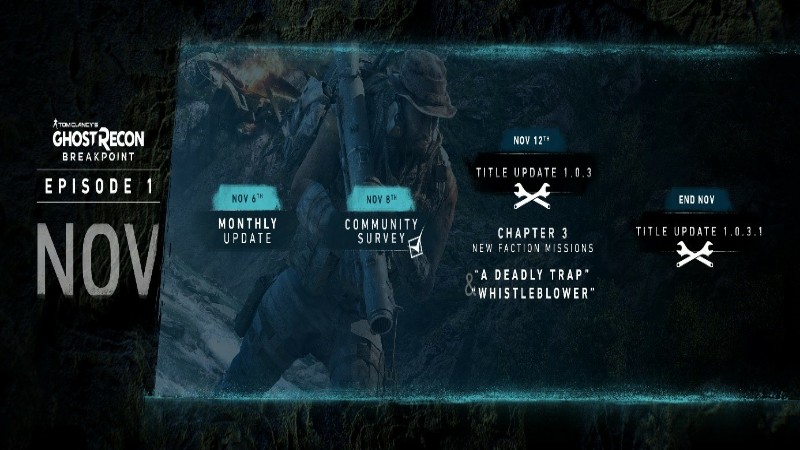 Das Team von Tom Clancy’s Ghost Recon Breakpoint veröffentlichte heute die Roadmap für den November 2019, die zahlreiche Verbesserungen sowie zwei neue Missionen beinhaltet.