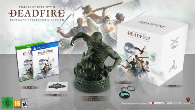 Du kannst nicht nur im Spiel einen Gott jagen, sondern auch einen auf deinem Regal präsentieren! Pillars of Eternity 2: Deadfire erscheint am 28. Januar 2020 mit zwei Versionen auf PS4 und Xbox One. Die Standard Version wird für 59,99 € und die Ultimate Collector’s Edition für 129,99 € erhältlich sein. Folgende Gegenstände sind bei der Ultimate Collector’s Edition enthalten: