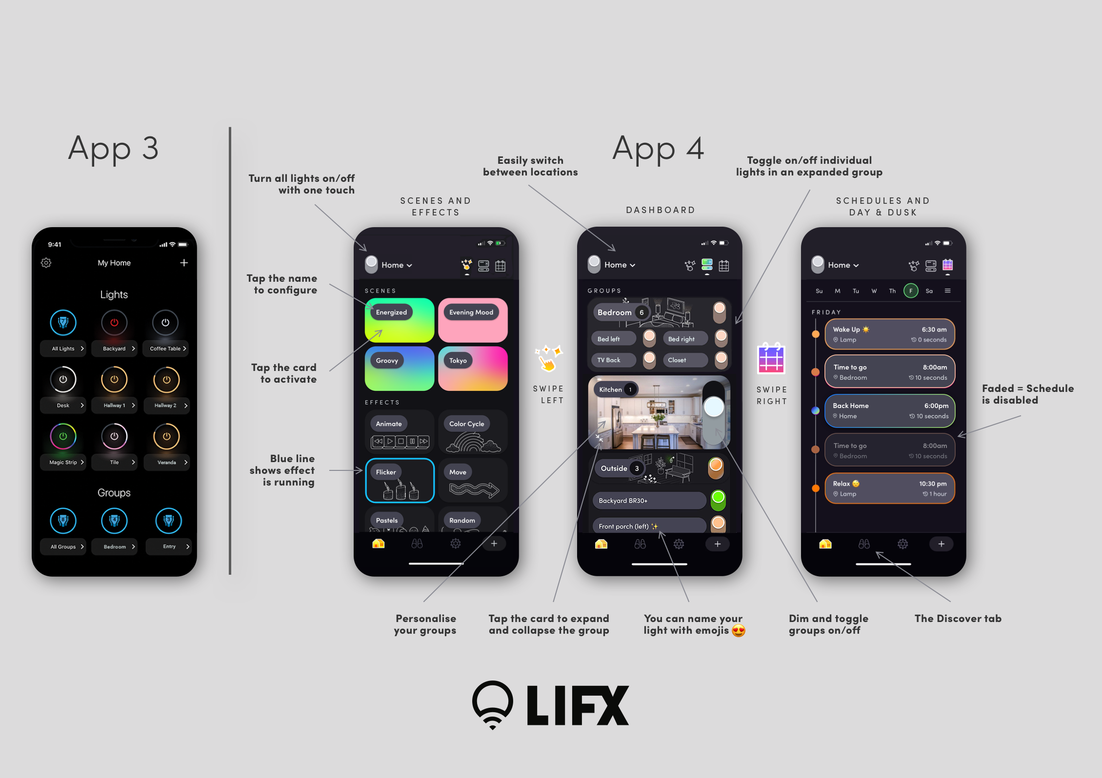 Die neue LIFX App ist ab jetzt verfügbar und bringt ein völlig neues App-Erlebnis mit sich. Denn die App wurde von Grund auf neu entwickelt und verfügt über eine verbesserte Steuerung, bei der Effizienz und Persönlichkeit in den Mittelpunkt des Designs gerückt wurden. Eine Priorisierung automatisier Prozesse innerhalb der App sorgt dafür, dass Nutzer die App smarter nutzen können aber weniger brauchen müssen – Die Anzahl der einzelnen Schritte wurde reduziert, um schneller an das gewünschte Ziel zu gelangen.