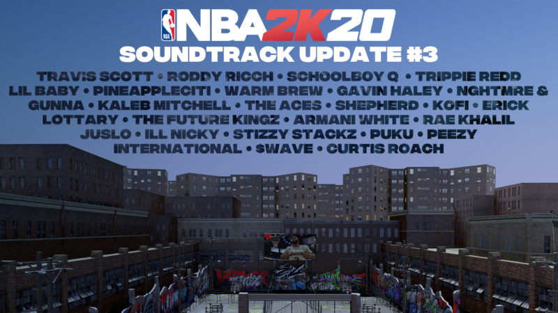 2K hat nun sein drittes dynamisches Update für den Soundtrack von NBA 2K20 veröffentlicht und 24 neue Songs von Künstlern wie Travis Scott, Roddy Ricch, Schoolboy Q und Trippie Redd hinzugefügt.