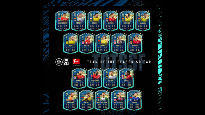 Electronic Arts veröffentlicht heute das „Team of the Season So Far“ (TOTSSF) der Bundesliga. Die Spieler wurden auf Grund ihrer Performance in der bisherigen Saison bestimmt und sind nun Teil eines einzigartigen Teams in EA SPORTS FIFA 20.