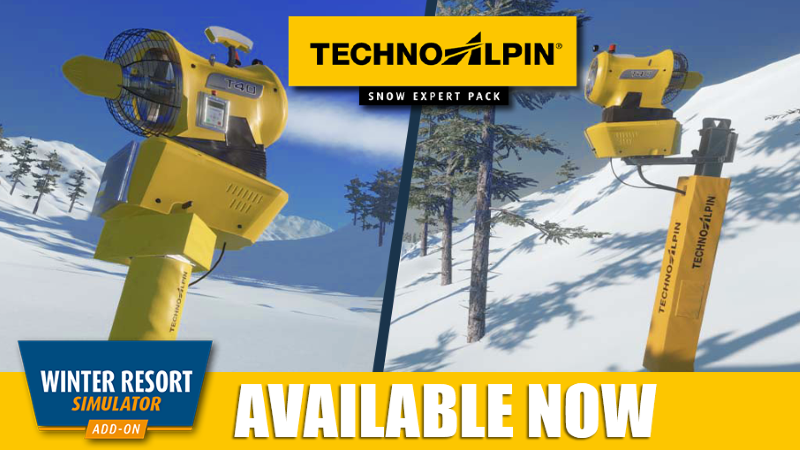 Der Winter Resort Simulator bietet eine ausgefeilte Simulation eines Ski Resorts mit dem technischen Betrieb der Seilbahnen als besonderen Schwerpunkt – und wird jetzt durch den ersten DLC noch realistischer. Mit dem TechnoAlpin Snow Expert Pack kommen Schneekanonen von TechnoAlpin, einem der Marktführer in diesem Bereich, ins Spiel – diese sind realistische Nachbildungen der Maschinen des Herstellers und selbstverständlich mit der offiziellen Lizenz und originalen Sounds versehen. Neben den Schneekanonen T40 und M18 ist im TechnoAlpin Snow Expert Pack auch die Schneilanze V3 enthalten, die die Spieler bei ihren Beschneiungsarbeiten unterstützt.