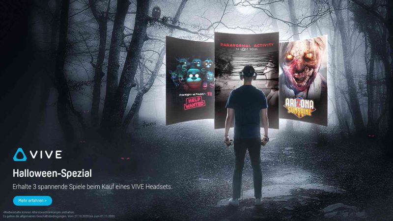 Mit welchen VIVE Headsets dieses Angebot wo verfügbar ist, lässt sich unter vive.com/2020Halloween einsehen.