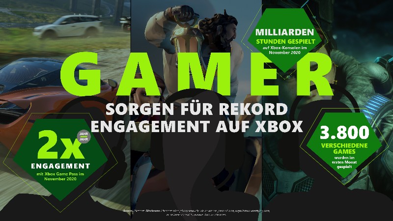Die Resonanz auf die Einführung von Xbox-Series X|S ist überwältigend. Im November verbrachten Gamer Milliarden Stunden in mehr als 3.800 Spielen und verdoppelten das monatliche Engagement im Xbox Game Pass im Vergleich zum Vorjahr. Der Rückblick in der Übersicht: