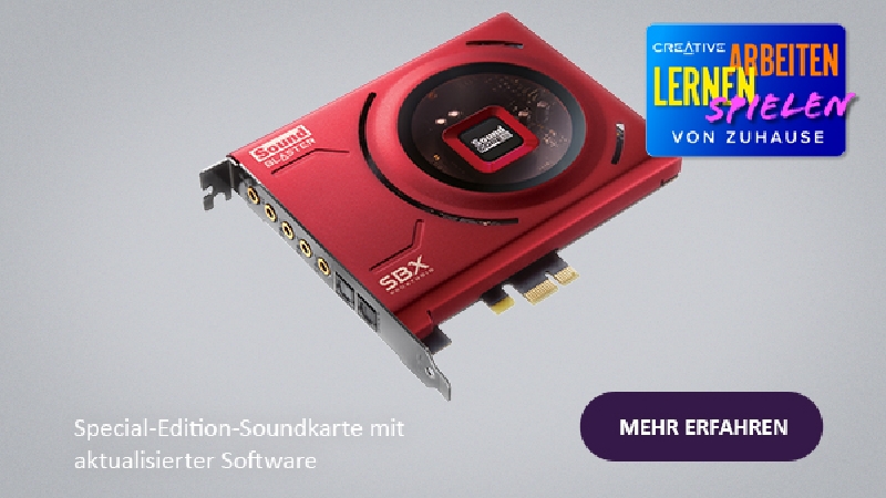 Creative Technology, weltweit führender Anbieter von Produktinnovationen im Audio- und PDE-Segment, kündigt die Veröffentlichung des Sound Blaster Z SE an, der neuesten Ergänzung der etablierten Sound Blaster Z-Serie. Diese Special Edition kommt mit aktualisierten Funktionen, die ein noch besseres Audioerlebnis bieten – gestützt auf 30 Jahre Erfahrung in der Audioverarbeitung. Mit einer Vielzahl neu hinzugefügter Gaming-Profile sowie Mikrofon- und Kopfhörer-EQ-Presets ist der Sound Blaster Z SE die ideale Soundkarte fürs Gaming und auch für Videokonferenzen bei der Arbeit von zu Hause aus.