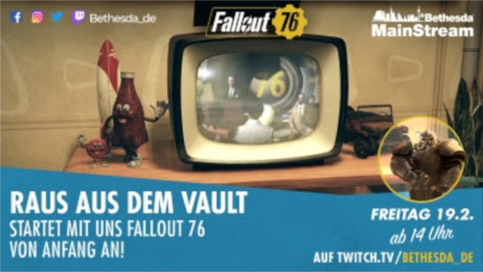 Am morgigen Freitag, den 19. Februar starten wir mit einer neuen Reihe im Bethesda MainStream unter twitch.tv/Bethesda_de: Fallout 76 – RAUS AUS DEM VAULT. Seit dem Launch im November 2018 hat Fallout 76 nämlich jede Menge neue Inhalte bekommen und wurde ständig erweitert und verbessert. Diese Stream-Reihe richtet sich daher an alle Neueinsteiger:innen in Fallout 76 und die, die es werden wollen.