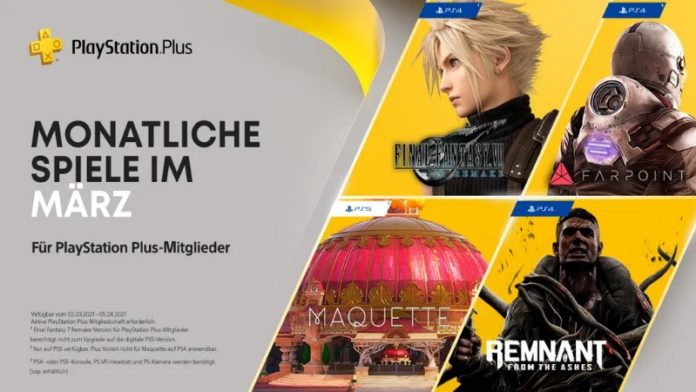 PlayStation Plus-Mitglieder erwarten schon bald vier spannende Plus-Spiele: Ab dem 2. März können sie die PS4-Spiele FINAL FANTASY VII REMAKE und Remnant: From the Ashes herunterladen. Besitzer einer PlayStation VR dürfen sich zudem auf Farpoint freuen. Auch die Neuerscheinung Maquette steht mit der Veröffentlichung am 2. März für Plus-Mitglieder zur Verfügung. Bis zum 5. April haben Spieler außerdem weiterhin die Möglichkeit, sich die actiongeladene und exklusive PS5-Neuerscheinung Destruction AllStars zu sichern.