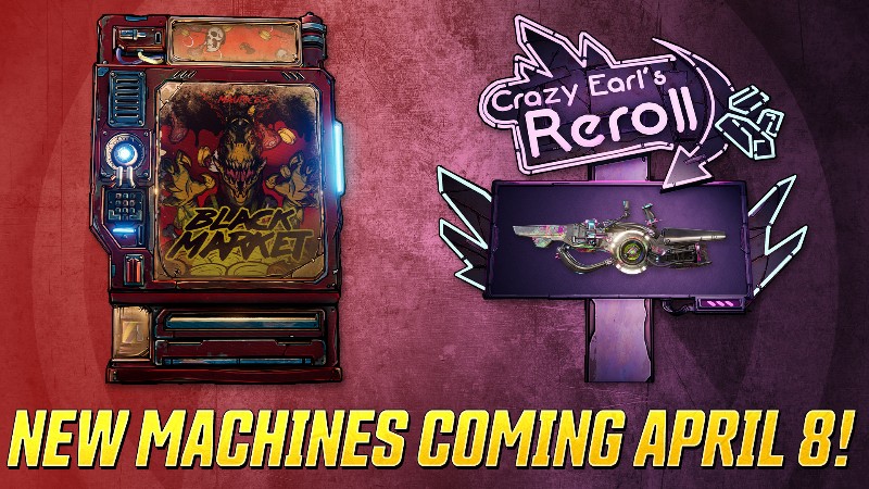 Alle Kammer-Jäger aufgepasst! Heute startet in Borderlands 3 ein weiteres zeitlich begrenztes Mini-Event und ab dem 8. April wird es im Basisspiel zwei neue Automaten geben: Crazy Earls Neuwurf und Maurices Schwarzmarkt-Automat, die allen Spielern ohne zusätzliche Kosten zur Verfügung stehen werden.