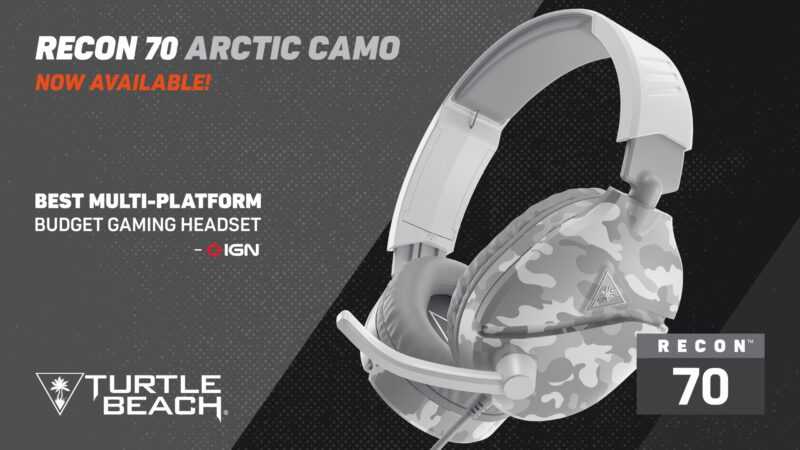 Derführende Hersteller von Gaming-Audio- und Zubehör Turtle Beach (NASDAQ: HEAR) hat heute die neueste Farbvariante für sein Bestseller-Gaming-Headset Recon 70 angekündigt. Das brandneue Recon 70 Camo Polarweiß ist ab sofort unter www.turtlebeach.com und bei ausgewählten Retailpartnern erhältlich. Mit dem neuen Camo Polarweiß steht dem Gamer jetzt die zehnte Farbvariante des Recon 70 zur Verfügung und jede bietet den beeindruckenden Klang und den leichten Tragekomfort, den Gamer von Turtle Beach erwarten. Leistungsstarke 40-mm-Over-Ear-Lautsprecher, kristallklare Mikrofon- Performance, kunstlederbe-zogene Polster und Multiplattform-Funktionalität mit Xbox One, Xbox Series X|S, PlayStation5, PlayStation4, Nintendo Switch, PC und mobilen Geräten sowie ein UVP von 34,99 Euro machen das Recon 70 zur perfekten Wahl