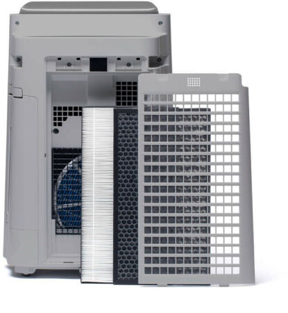 SHARP UA-HD60E-L Luftreiniger (mit Befeuchtungsfunktion, Verbesserung der Luftqualität, Ideal für Allergiker, drei Stufen Filtersystem, HEPA-Filter, Räume bis zu 48 m²) hellgrau