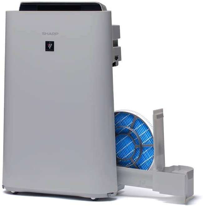 SHARP UA-HD60E-L Luftreiniger (mit Befeuchtungsfunktion, Verbesserung der Luftqualität, Ideal für Allergiker, drei Stufen Filtersystem, HEPA-Filter, Räume bis zu 48 m²) hellgrau