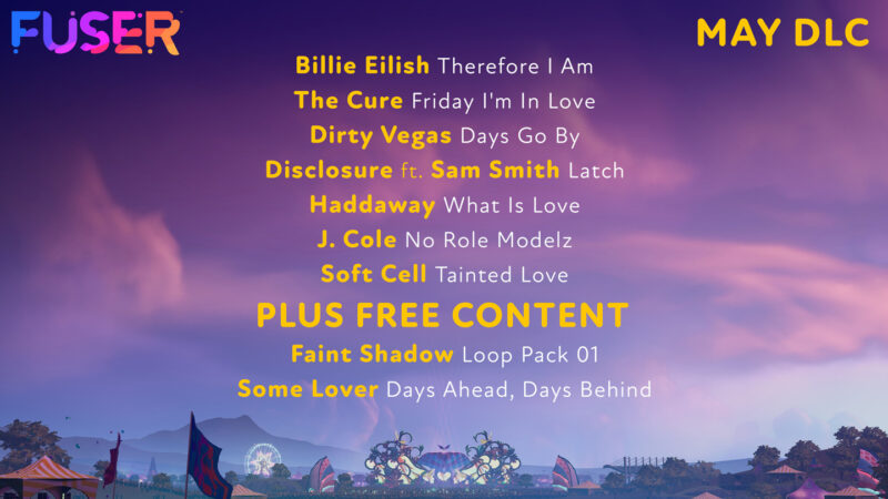 NCSOFT und Harmonix geben bekannt, dass der Mai-DLC von FUSER zahlreiche Songs enthält, um neue und noch abwechslungsreichere Mixes erstellen zu können. Mit dabei sind unter anderem der Jangle Pop Rock Song „Friday I’m in Love“ von The Cure, der ikonische Eurodance-Klassiker „What is Love“ von Haddaway oder auch der bekannte 80s Synth Sound von Soft Cells „Tainted Love“.