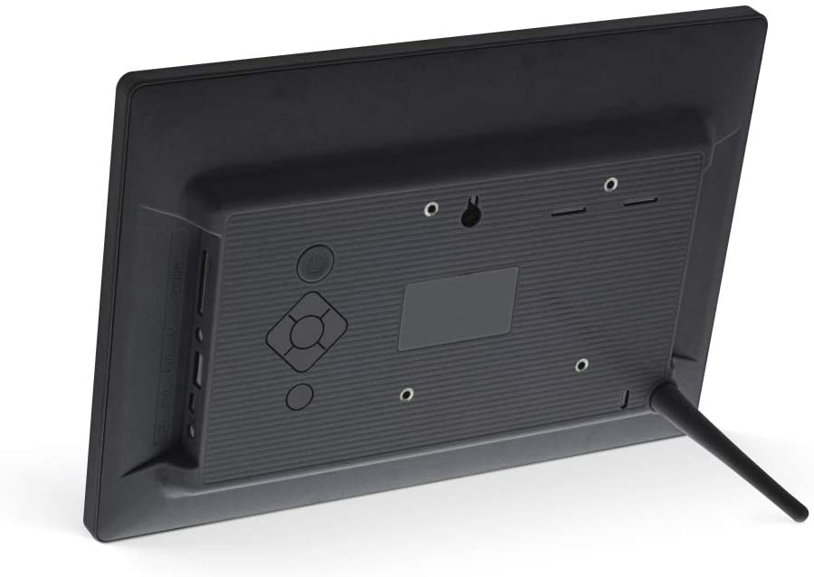 Auf den ersten Blick sieht der InLine WiFrame schlicht, aber schick aus: ein schwarzes (oder weißes), gerade einmal 3cm flaches Gerät mit einer Breite von 26,3cm und einer Höhe von 18,2cm. Auf der Rückseite befinden sich ein Power-Schalter, ein Standfuß sowie drei VESA-Lochungen, welche eine Montage an handelsüblichen Monitorhalterungen ermöglichen. Eine Strombuchse, ein 3,5mm-Anschluss sowie ein SD/MC/MMS-Kartenausgang, USB 2.0- und Mini-USB-Buchsen sorgen für die optimale Konnektivität und die Möglichkeit, verschiedenste Geräte mit dem digitalen Bilderrahmen zu verbinden. Der 10,1 Zoll große LED-Bildschirm mit einer Auflösung von 1280 zu 800 Pixeln und IPS Touchscreen ist leuchtstark, bildet Farben realitätsgetreu ab und reagiert gut auf Berührungen. Überraschenderweise sind Fingerabdrücke auf dem Display außerdem kaum zu sehen, sodass es auch nach der Nutzung der Touchfunktion sehr sauber und damit optisch ansprechend bleibt.