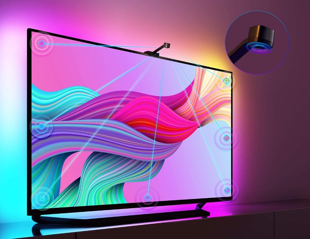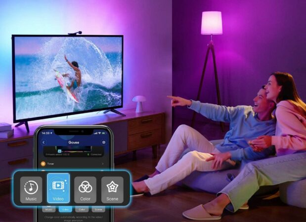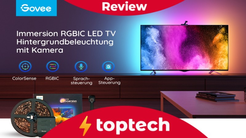 Die Govee Immersion Wifi TV-Hintergrundbeleuchtung synchronisiert sich sowohl mit der Anzeige als auch mit dem Sound des Fernsehers und sorgt damit für herausragende Erlebnisse im Wohnzimmer. Sie kann aktuell für etwa 75 bis 80 Euro erworben werden. Insgesamt handelt es sich dabei um ein interessantes Gadget, welches neuen Wind in einen vielleicht tristen Fernseher bringt und das eigene Wohnzimmer zum abwechslungsreichen Heimkino und Gaming-Room aufwertet.