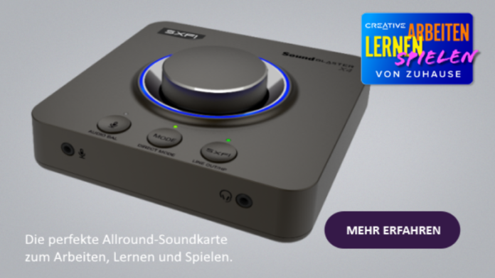 Creative Technology gibt heute den Launch des Sound Blaster X4 – dem aktualisierten Nachfolger des erfolgreichen Sound Blaster X3 – bekannt, der praktische neue Smart-Funktionen mit verbesserter Konnektivität kombiniert. Der neueste USB DAC macht sowohl diskreten als auch virtuellen Surround Sound „powered by Sound Blaster“ möglich, die preisgekrönte Super X-Fi Headphone-Holographie und Dolby Digital Live, um die ultimative Audio-Erfahrung in Filmen, beim Gaming und Musikhören zu garantieren. Und mit dem neuen SmartComms-Kit (für Windows), das praktische Funktionen wie Auto-Stummschaltung und Zwei-Wege-Geräuschunterdrückung mitbringt, macht der Sound Blaster X4 die Online-Kommunikation für alle, die im Home Office arbeiten, ganz einfach und sorgenfrei. Darüber hinaus bietet der Sound Blaster X4 eine Vielzahl von praktischen Verbindungs- und Kontrolloptionen für die schnelle und simple Einrichtung, was ihn zur perfekten All-in-One Audio-Lösung für PC-, Mac-, PS5-, PS4- und Nintendo Switch-Nutzer macht.