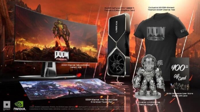 Zur Feier des Tages hat NVIDIA zusammen mit seinen Partnern bei Bethesda Softworks und id Software ein ganz besonderes, limitiertes DOOM Eternal Bundle geschnürt. Das Doom Eternal Demon Slayer Bundle ist nur für 300 Spieler erhältlich und enthält eine GeForce-RTX-3080-Ti-Founders-Edition-Grafikkarte und exklusive DOOM Eternal Gegenstände, darunter: