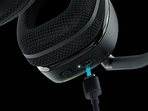 Die Kopfhörer selbst sind in schwarzem Plastik ummantelt und nach klassischer Art mit Schaumstoff am Kopf und an den Hörmuscheln gepolstert. Die drehbaren Scharniere und die leicht verstellbaren Längenadapter der zwei Hörteile passen auf die unterschiedlichsten Kopfformen. Somit bist du hiermit richtig ausgestattet, egal ob dein Kopf groß, klein oder überdurchschnittlich länglich ausfällt. In den unteren Bereichen der Hörer sind LED-Lamellen verbaut, die dank AIMO-Technologie schnell und einfach in Millionen von Farbspektren konfigurierbar ist. Das kommt nicht nur uns, sondern auch dir sehr zupass. Ein Gaming-Setup, was mit Leidenschaft gestaltet wird, hat oft ein einheitliches Layout. Ob RGB-Beleuchtung an der Tastatur, LED-Relays im PC-Gehäuse oder eben innerhalb des Headsets: Mit einheitlichen Farben wirkt alles gleich spannender und macht den Gamingmarathon interessanter.