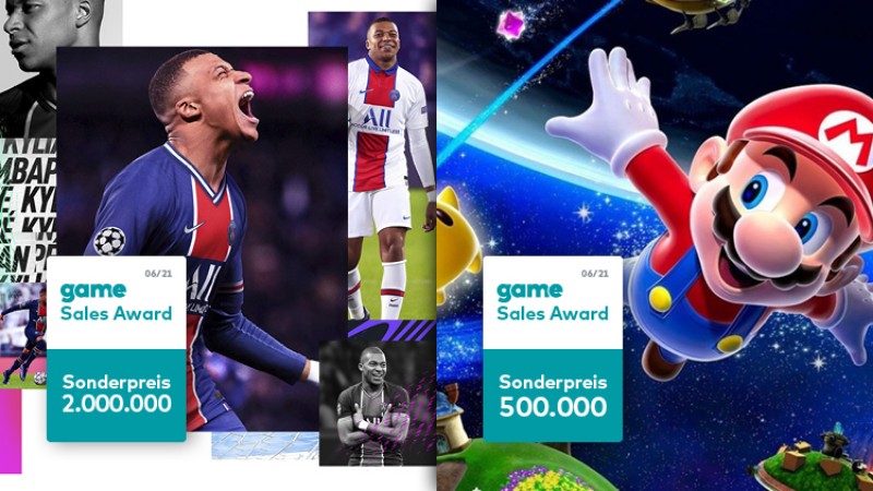 Im Juni kann der game – Verband der deutschen Games-Branche zwei Titel mit einem game Sales Award für besondere Verkaufserfolge auszeichnen. So ist es der Fußballsimulation „EA SPORTS FIFA 21“ gelungen, die Marke von 2 Millionen verkauften Spielen zu knacken. Der neueste Teil der Fußball-Serie wird für diesen Erfolg mit seinem insgesamt vierten game Sales Award Sonderpreis ausgezeichnet. Darüber hinaus kann sich „Super Mario 3D All-Stars“ über einen Award freuen. Die Spiele-Sammlung mit den Klassikern „Super Mario 64“, „Super Mario Sunshine“ und „Super Mario Galaxy“ für die Nintendo Switch hat die Hürde von 500.000 verkauften Spielen in Deutschland genommen. Hierfür gibt es den ersten game Sales Award Sonderpreis.