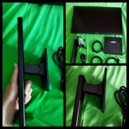 Das Display ist nahezu rahmenlos Eingefasst und hat ebenfalls einen sehr geringen Schwarzbereich wodurch wir auf eine effektive Anzeigegröße von 596,7 x 335,7 mm kommen und eignet sich dabei auch gut zur Kombination mit weiteren Monitoren.