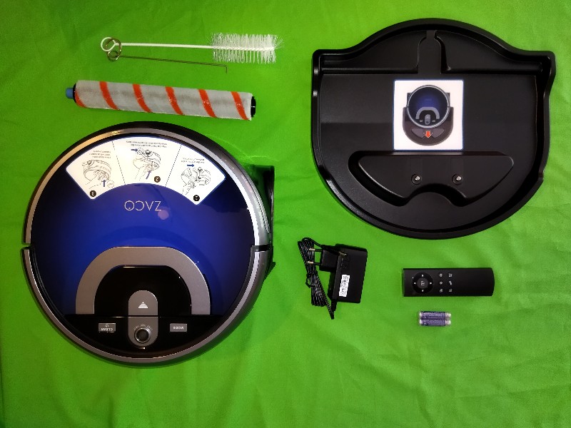 Im Lieferumfang befindet sich neben dem Wischroboter eine Ladestation mit Netzstecker, eine Ersatzbürste, Reinigungswerkzeug und eine Fernbedienung mit 2AA Batterien.
