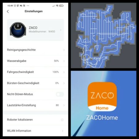 Wer es richtig komfortabel haben möchte und seinen ZACO W450 Wischer auf genaueste konfigurieren möchte, kann dieses via App am Smartphone machen. Die App für Android und iOS kann im jeweiligen Store kostenlos geladen werden. Um die entsprechende App besser finden zu können sind in der Anleitung QR-Codes für den direkten Download angegeben.