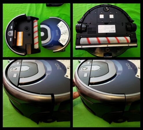Um den zu reinigenden Bereich abzutasten hat der ZACO W450 mehrere Sensoren. Zu einem ist er mit der 360° Kamera ausgerüstet um die Umgebung zu scannen und Kollisionen zu vermeiden. Dazu kommt der für die Art von Geräten typische Kontaktsensor indem der vordere Bereich federgelagert ist und bei Kontakt das im Weg stehende Objekt erkennt und seinen Fahrweg korrigiert. Wer den ZACO W450 im Bereich von Treppen oder Stufen einsetzen möchte sollte zwar immer darauf achten das ein Absturz vermieden wird, aber auch für den Fall besitzt der Roboter entsprechende Sensoren um Höhenunterschiede zu erkennen und so den Sturz nach unten zu vermeiden. Dabei sind an der Vorderseite mittig und seitlich im Bereich der Rollen die Abstursensoren verbaut.