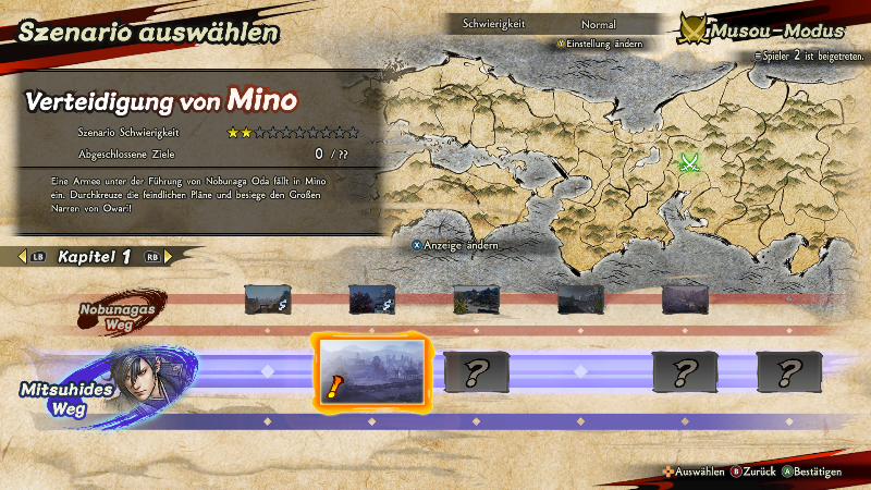 Die Geschichte ist anfangs sehr einseitig auf den Oda Clan fokussiert und auch der spielbare Charakter auf eben den Lord des Oda Clan beschränkt. Mit der Zeit kommen aber verschiedene neue spielbare Offiziere hinzu und je nach Geschichte habt man hier und dort die Wahl einen anderen Spielbaren Kämpfer dazu zu wählen um in der Schacht zwischen eben diesen zu wechseln. Nach einiger Zeit kommt eine weitere Hauptperson ins Spiel und die Geschichte spaltet sich ein wenig auf, zwar bleibt der Weg von Nobunaga der Hauptstrang des Spiels aber wir haben ab sofort eine weitere Storyline die uns die Ereignisse aus einer anderen Sicht erleben lässt.