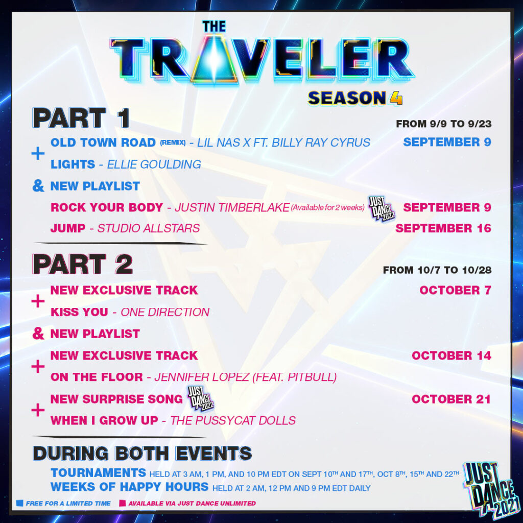 Teil 1 wird ab dem heute bis zum 23. September verfügbar sein und beinhaltet die Veröffentlichung eines neuen und exklusiven Just Dance 2022 Songs, „Rock Your Body“ von Justin Timberlake. Dieser wird ab heute für zwei Wochen über Just Dance Unlimited verfügbar sein.