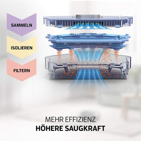 Im Zaco A10 befinden sich ein 450 Milliliter großer Staubtank sowie Platz für 300 Milliliter Wasser, welche im Wisch-Modus verbraucht werden. Der Wassertank ist mit einer pulsierenden Wischplatte ausgestattet, welche dafür sorgt, dass das Wasser gleichmäßig auf dem Boden verteilt wird, und keine Schmutzrückstände oder Wasserlachen verbleiben. Es wird also nebelfeucht gewischt, sodass der Roboter auch für Parkettböden perfekt geeignet ist. Eine integrierte Hybrid-Borsten-Bürste reinigt Teppiche, die Gummilamellen-Bürste eignet sich besonders für Hartböden. Zusätzliche Seitenbürsten sorgen dafür, dass auch der Schmutz in Ecken sowie im direkten Umfeld des Fahrwegs perfekt entfernt wird. Die Wasserzufuhr im Wischmodus kann in der ZacoHome App in drei Stufen reguliert werden. Auch die Saugkraft und die Geschwindigkeit der Seitenbürsten können reguliert und somit optimal an den eigenen Haushalt angepasst werden. Während sich der Sanfte Modus des Roboters besonders für empfindliche Untergründe eignet, ist der Max-Modus für starke Verunreinigungen gedacht. Durch das innovative Design des Cellular-Staubtanks mit dreifacher Filterung im Zaco A10 entfernt der A10 auch Tierhaare und feinsten Staub und bewahrt ihn so lange auf, bis er schnell und rückstandsfrei entfernt werden kann. Damit ist der Zaco A10 das ideale Produkt für Allergiker.