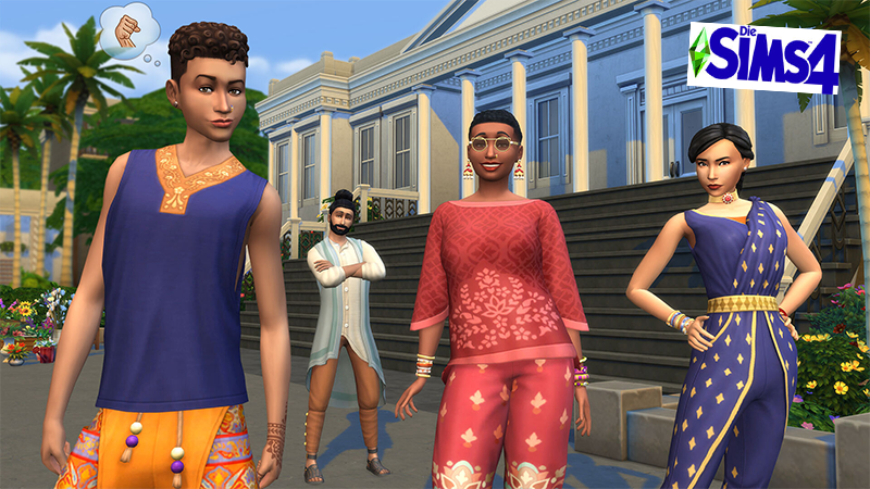 Die Sims hat mit der Art-Meets-Fashion-Kuratorin Shruti Sitara Singh zusammengearbeitet, um eine Kollektion mit satten Farben, fließenden Stoffen, modernen Schnitten und kontrastreichen Mustern für das Die Sims 4 Fashion Street-Set zu erstellen. Außerdem sind zahlreiche neue Objekte und Accessoires wie Ohrringe, funkelnde Halsketten, Nasenringe, Henna-Tattoos und Sandalen enthalten.