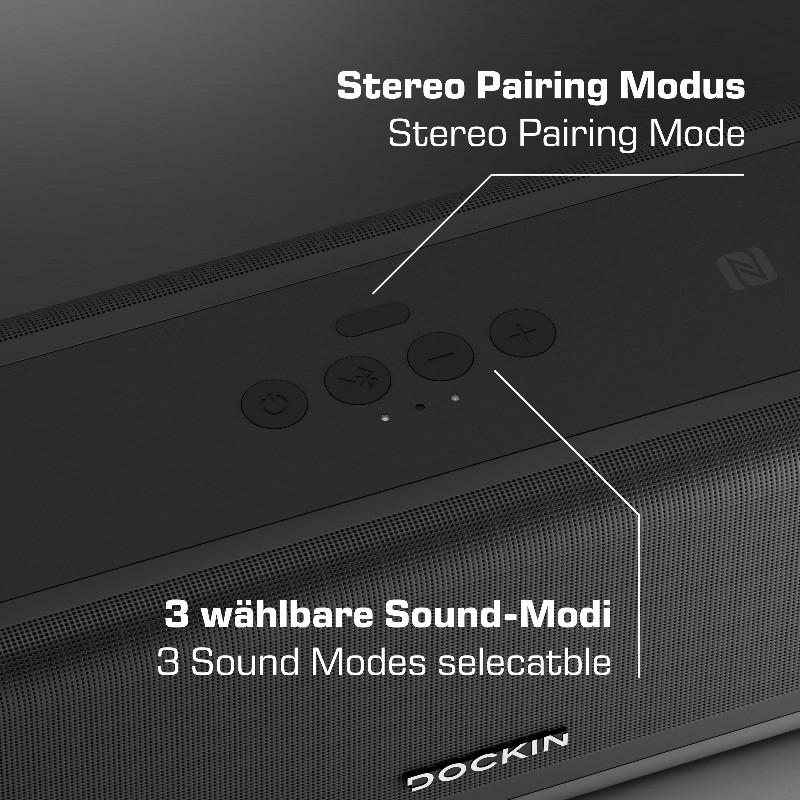 Ein Quellgerät kann per Bluetooth 5.0 oder aber per AUX- Kabel mit der D FINE+ 2 gekoppelt werden. Auch eine Übertragung per NFC ist möglich. Somit geht Dockin mit der Zeit und bringt sämtliche aktuell genutzten Übertragungswege ein.