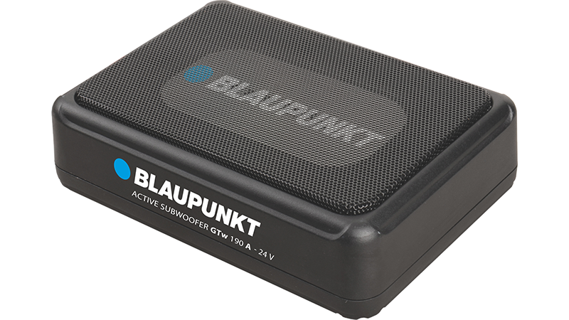 Ständig auf der Straße, wenig Platz und Sound-Enthusiast – das sind die perfekten Voraussetzungen für den neuen aktiven Underseat-Subwoofer des Car-Audio-Spezialisten Blaupunkt. Der GTw 190 A – 24 V bringt mit 150 Watt maximal Power gleichsam starke wie präzise Bässe ins Cockpit und garantiert eine wohldefinierte, detailgetreue Musikwiedergabe bei langen Fahrten.