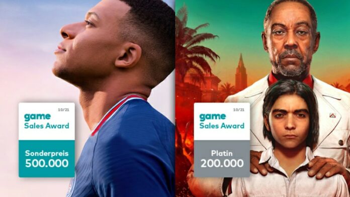 Im Oktober kann der game – Verband der deutschen Games-Branche zwei Titel mit einem game Sales Award für besondere Verkaufserfolge auszeichnen. So ist es der Fußballsimulation „EA SPORTS FIFA 22“ bereits wenige Wochen nach ihrer Veröffentlichung gelungen, die Marke von 500.000 verkauften Spielen zu knacken. Der neueste Teil der Fußball-Serie rund um Weltstars wie Ronaldo, Neymar oder Mbappé wird hierfür mit einem game Sales Award Sonderpreis ausgezeichnet. Und auch der First-Person-Shooter „Far Cry 6“ kann sich über eine Trophäe freuen. Dem neuesten Teil der Far-Cry-Spielereihe ist es ebenfalls kurz nach Release gelungen, eine wichtige Hürde zu nehmen: Der Titel konnte innerhalb weniger Wochen die Marke von 200.000 verkauften Spielen knacken. Hierfür gibt es einen game Sales Award in Platin.