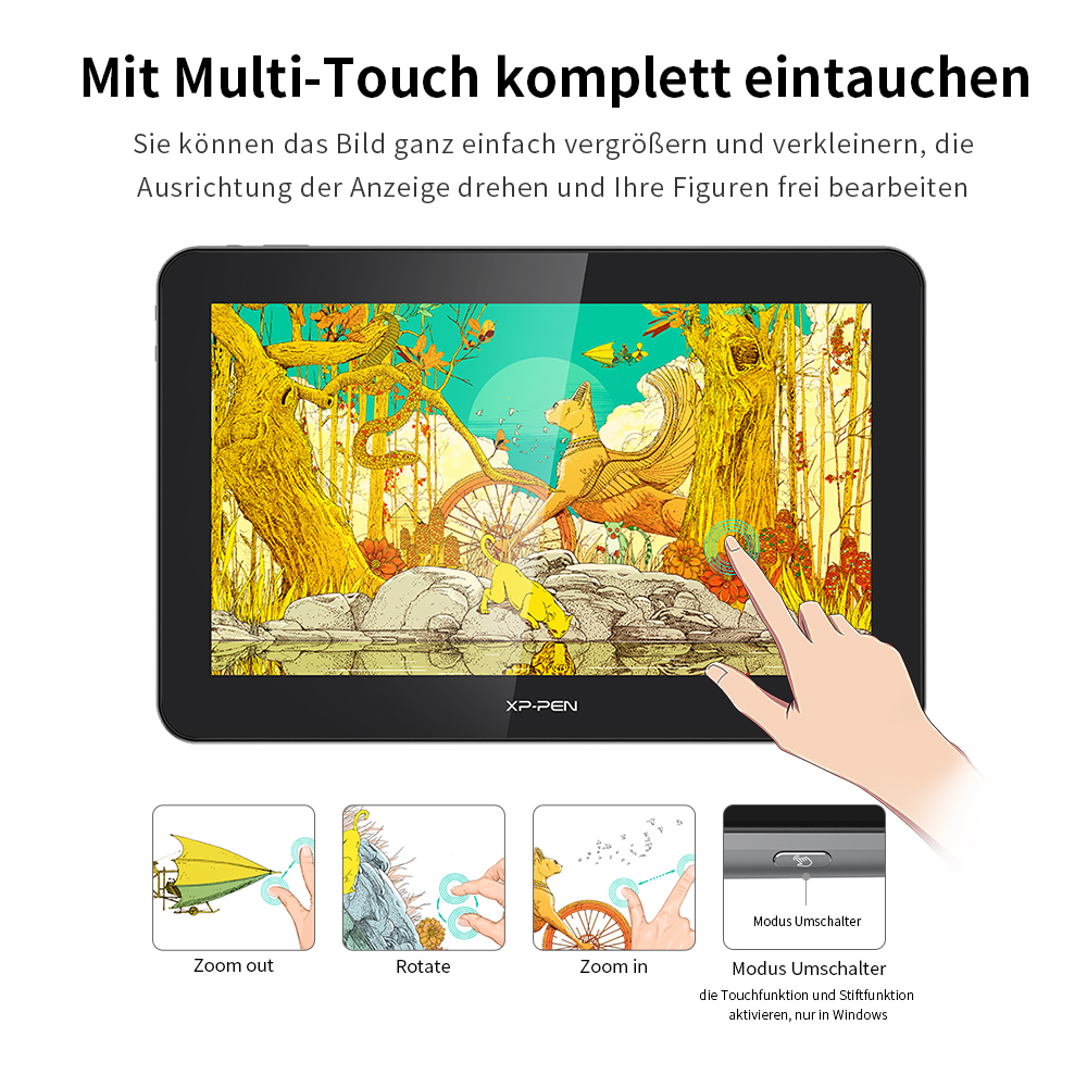 Auch überzeugt hat die Möglichkeit, dass das Display eine Touchfunktion mitbringt. Diese bringt mir nicht nur beim Zeichnen etwas, sondern auch als sinnvolle Ergänzung für das Homeoffice und andere Tätigkeiten. So gewinnt das XP-pen Artist Pro 16TP nicht nur als sinnvolles Zeichen-Display, sondern auch als sinnvoller Zusatzmonitor für die tägliche Arbeit.