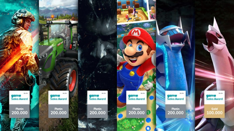 Im November kann der game – Verband der deutschen Games-Branche sechs Titel mit einem game Sales Award für besondere Verkaufserfolge auszeichnen. So ist es sowohl dem First-Person-Shooter „Battlefield 2042“ als auch dem Simulationsspiel „Landwirtschafts-Simulator 22“, dem Party-Spiel „Mario Party Superstars“ sowie dem Rollenspiel „Pokémon Strahlender Diamant“ und dem Survival-Horror-Titel „Resident Evil Village“ gelungen, die Marke von jeweils 200.000 verkauften Spielen zu knacken. Die Titel erhalten hierfür je eine Auszeichnung mit dem game Sale Award in Platin. Und auch das Rollenspiel „Pokémon Leuchtende Perle“ hat Grund zur Freude: Es konnte die Hürde von 100.000 verkauften Spielen nehmen und erhält hierfür einen game Sales Award in Gold.
